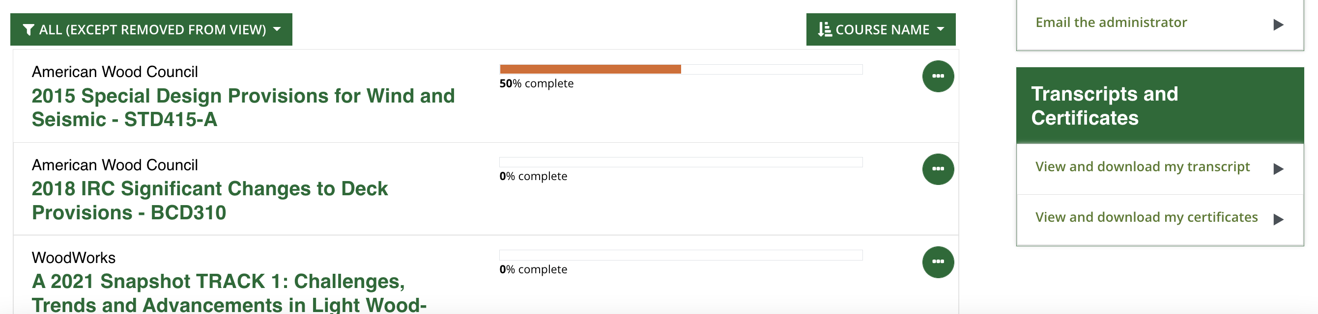 To see your progress in all courses and credit earned: Click My Courses in the site header. On the right side of the page, click View and download my transcript in the Transcripts and Certificates block. The Transcript page displays. This will list ...